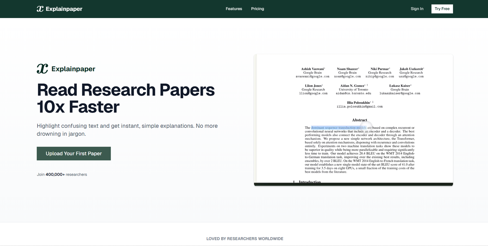 AI explanations for research papers